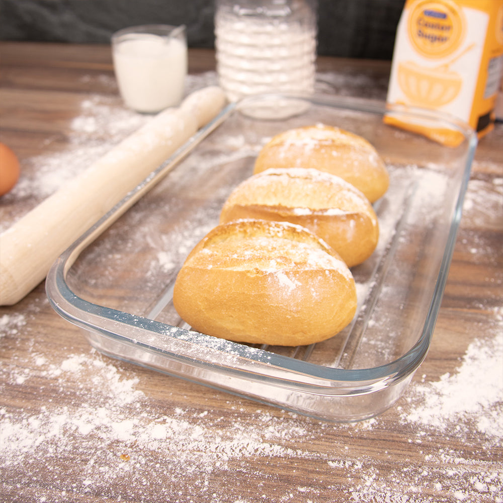 Durane Tempered Glass Ribbed Oven Roasting Tray 2L / 34 x 20 x 5.5cm 8970 (Parcel Plus Rate)