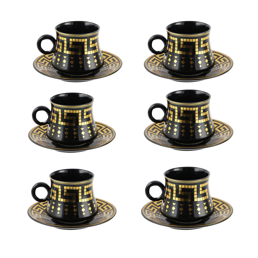 Durane Antico Tea Set 12pc Black-Gold 175ml 10519 (Parcel Plus Rate)