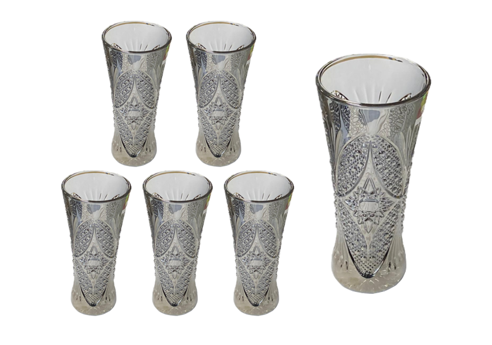 Small Half Pint Decorated Drinking Glass 15 x 7 cm Set of 6 Black Grey 7058 (Parcel Plus Rate)