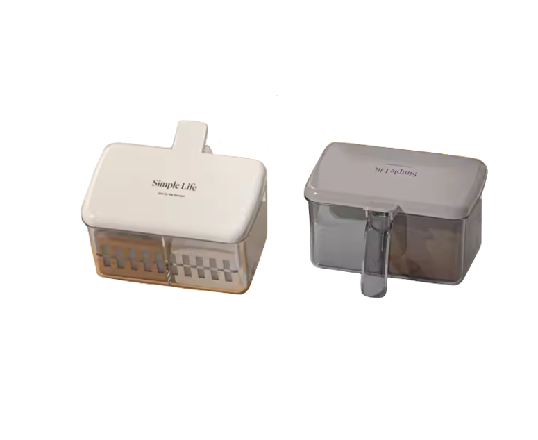 - Plastic Transparent 2 Compartment Seasoning Spice Storage Container with Handle and Spoons